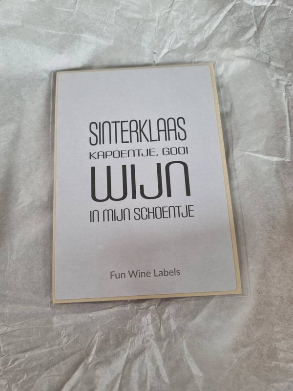 Maak het geven van wijn onvergetelijk—bestel het wijnetiket “Sinterklaas kapoentje” vandaag nog en geef een fles net dat beetje extra flair!