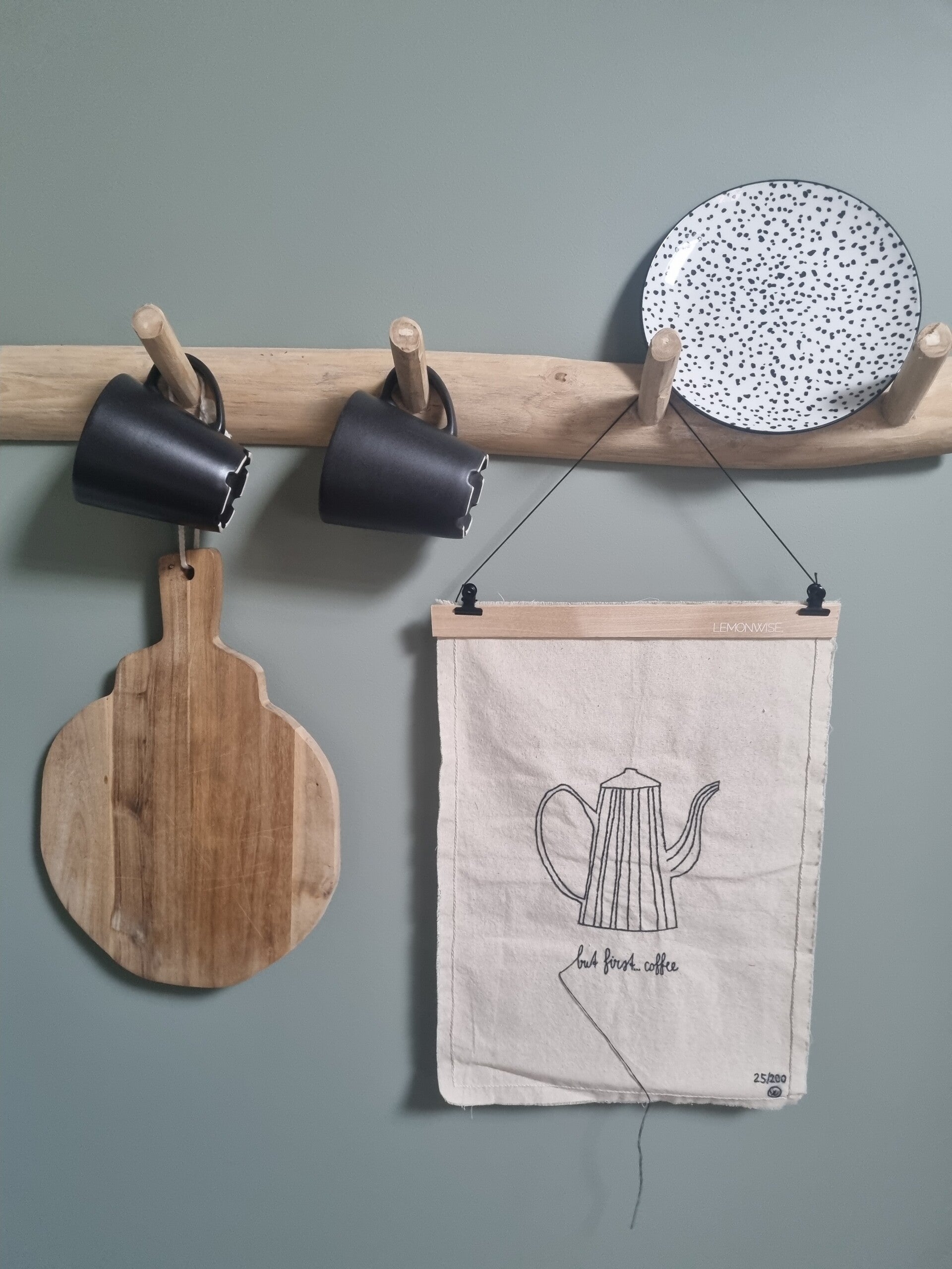 Wanddoek "But first coffee"