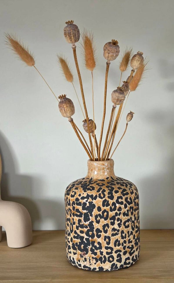 De keramieken Vaas Panterprint is een echte eyecatcher voor in jouw interieur! Met zijn trendy printje en stijlvolle vormgeving brengt deze kleinere vaas direct een speelse, maar chique uitstraling in huis. Perfect voor droogbloemen of gewoon als decoratief item op zich.