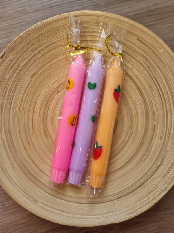 Deze oranje kaars met rode aardbeitjes brengt meteen kleur én gezelligheid! De kaars is met de hand versierd met kleine rode aardbeitjes die niet alleen super cute zijn, maar ook zorgen voor een speelse en unieke uitstraling. Of je nu een cadeautje zoekt of je interieur een fruitige touch wilt geven – dit is jouw perfecte match.