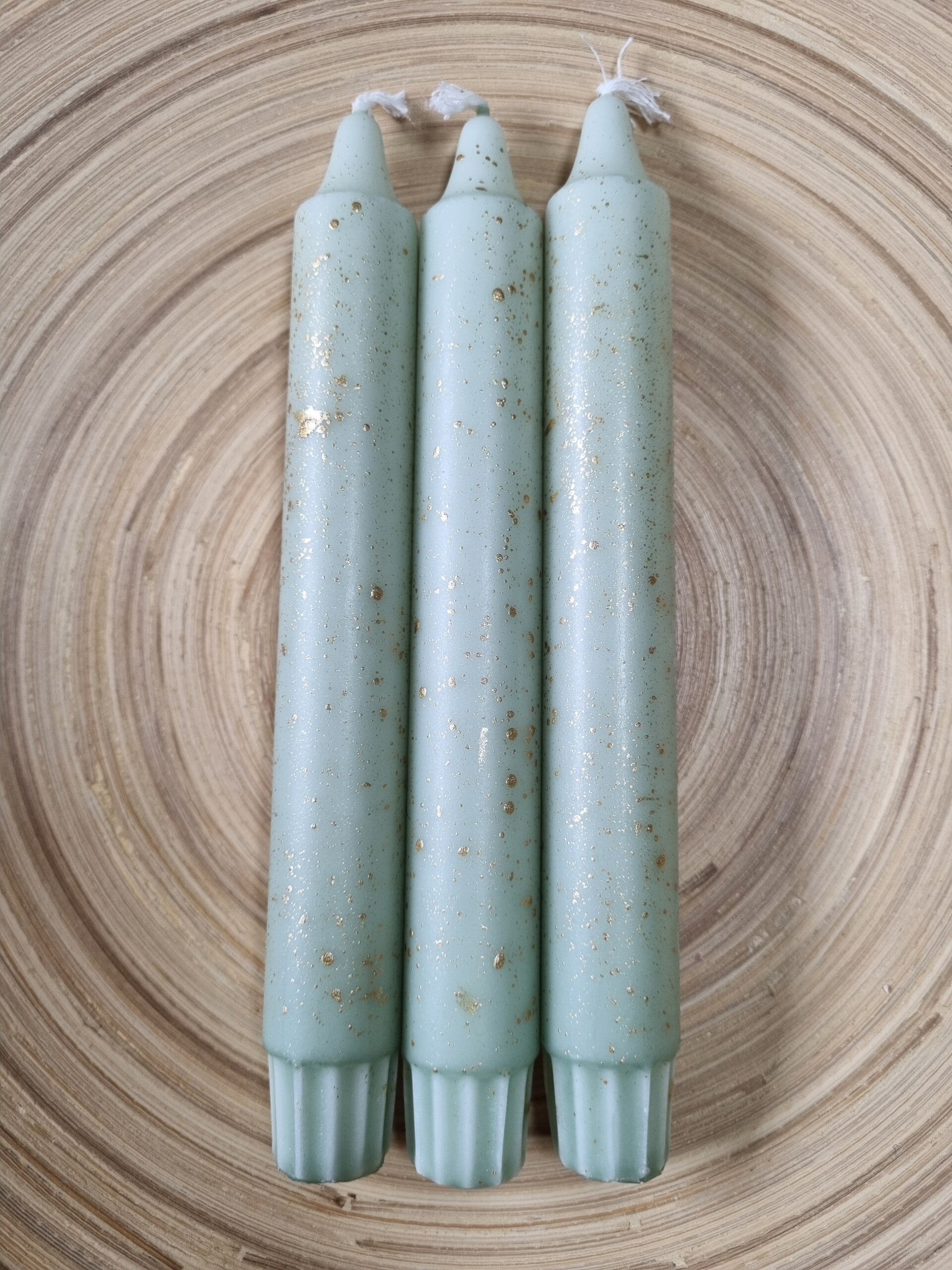 Deze kaars is pure gezelligheid in een elegante, trendy jasje! Hand gedipt in groen en afgewerkt met een vleugje gouden glitters straalt hij warmte én stijl uit. Het subtiele glittereffect maakt hem net dat beetje feestelijker – perfect voor een gezellige avond thuis, als verfijnde tafeldecoratie of als cadeautje voor iemand die je dierbaar is.