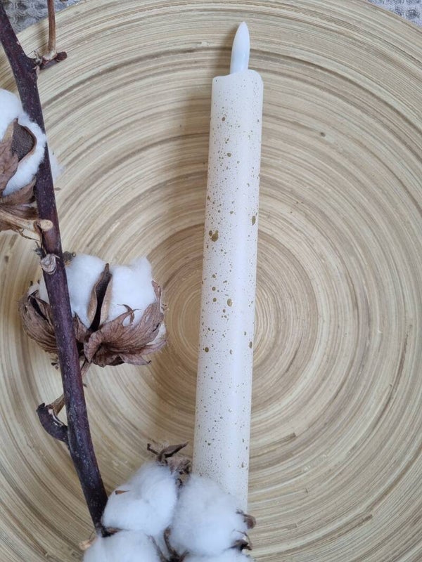 Breng rust en warme sfeer in huis met deze LED kaars in wit, verrijkt met glinsterende, gouden glitterdecoratie. De pastelroze tint maakt deze kaars een perfecte toevoeging aan een stijlvol interieur — rustiek, modern of Scandinavisch.