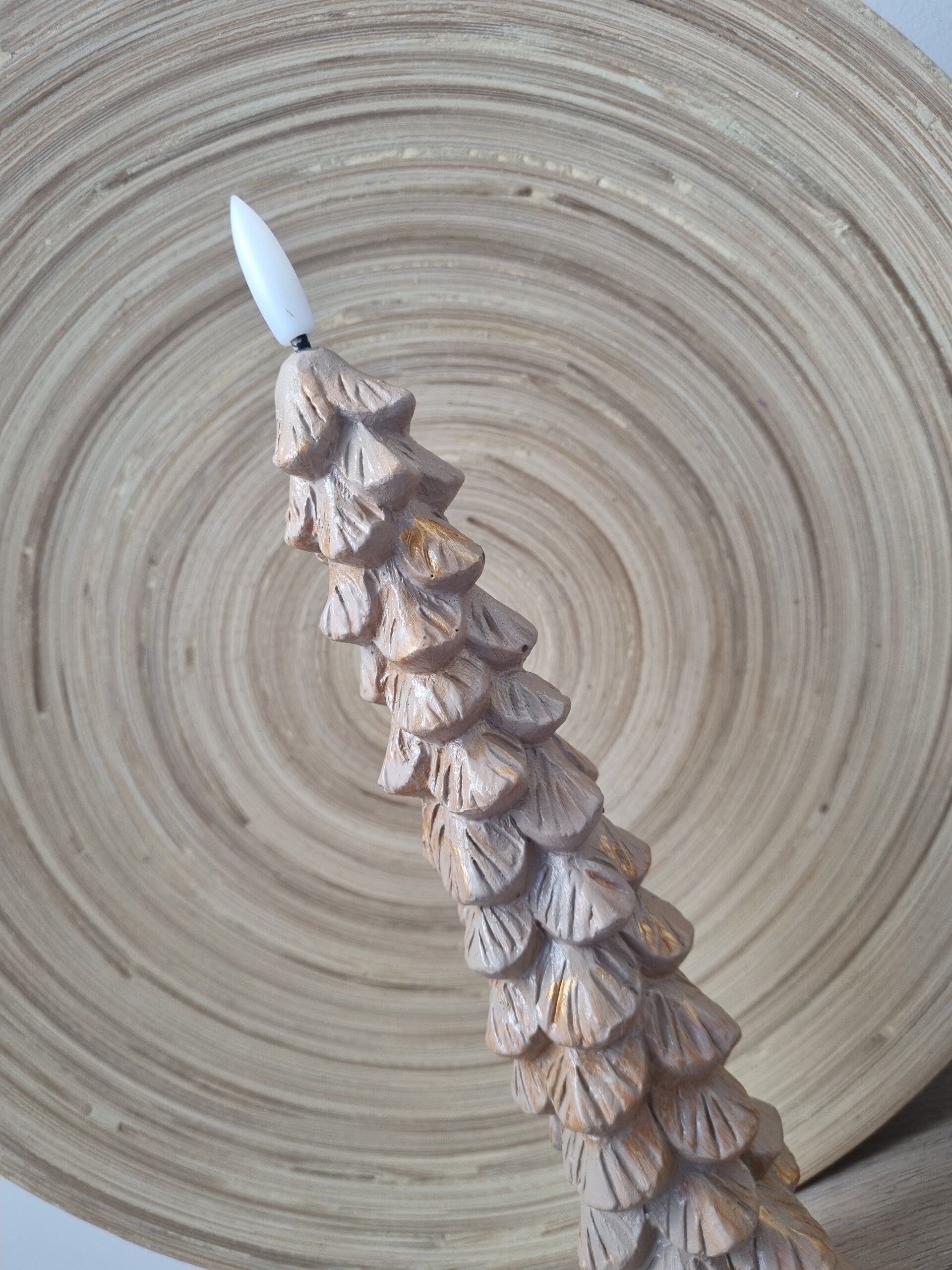 Breng de magie van kerst tot leven in huis met de Kerstboom LED Kaars Beige Deluxe. Deze prachtige LED-kaars in kerstboomvorm zorgt voor een warme, feestelijke sfeer zonder vuur- of brandgevaar. Perfect om te decoreren én als duurzaam cadeau voor de feestdagen.