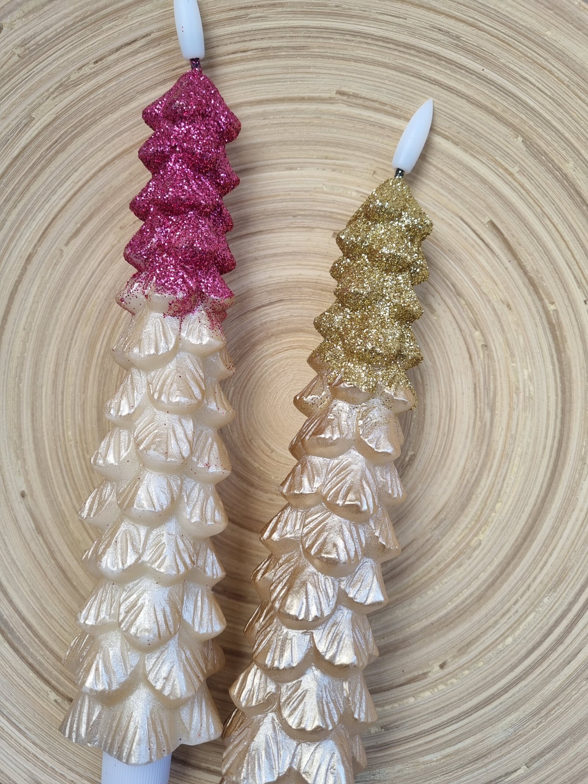 Breng de magie van kerst tot leven in huis met de Kerstboom LED Kaars Roze Glitter. Deze prachtige LED-kaars in kerstboomvorm zorgt voor een warme, feestelijke sfeer zonder vuur- of brandgevaar. Perfect om te decoreren én als duurzaam cadeau voor de feestdagen.