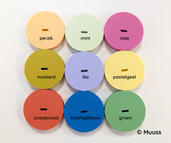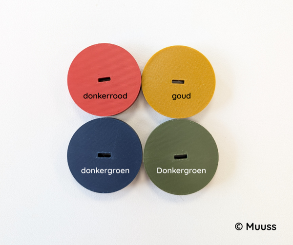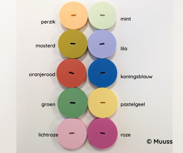 Alle onderdelen zijn 3D-geprint van duurzaam PLA, een milieuvriendelijk bioplastic op basis van maïszetmeel. Lokaal geproduceerd, lichtgewicht, uitgevoerd in verschillende kleuren.