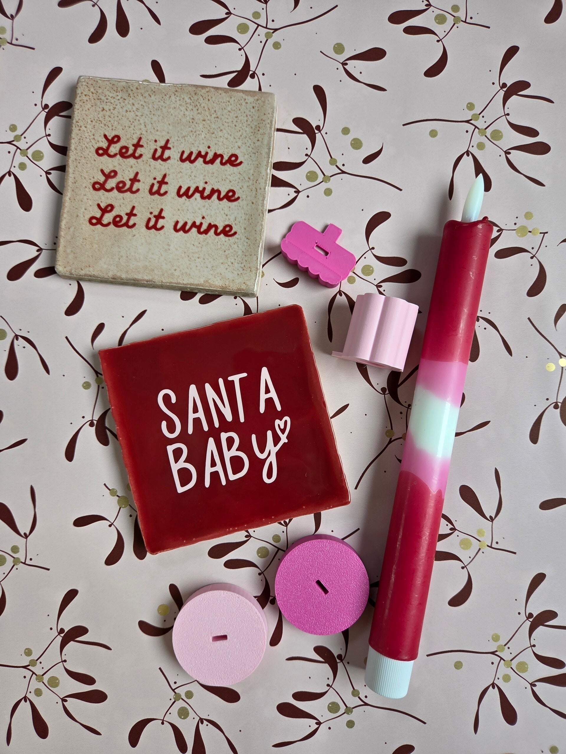 Voeg een trendy en speelse kerstvibe toe aan je interieur met dit rode tegeltje met roze tekst “Santa Baby”. Perfect om je huis sfeervol te versieren of als origineel cadeau voor vrienden en familie. Elk tegeltje is zorgvuldig ontworpen en brengt warmte, stijl en vrolijkheid in de feestdagen. Voeg het toe aan je kerstcollectie of verras iemand met een stijlvol en uniek cadeau!