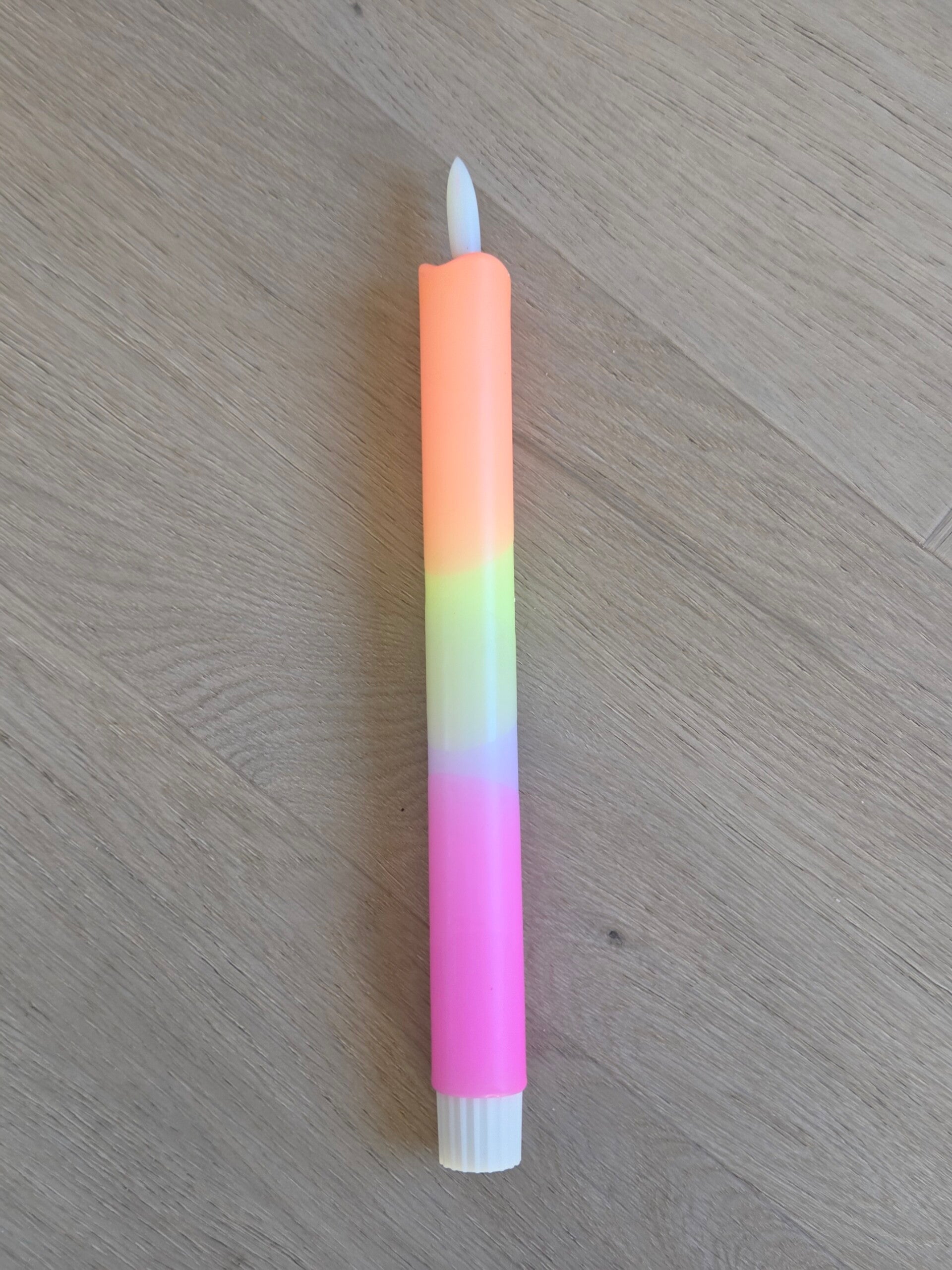 Breng gezelligheid en vrolijkheid in huis met deze LED kaars in felle neon kleuren (oranje,geel,paars,roze). De mooie tinten maken deze kaars een perfecte toevoeging aan een kleurrijk interieur!