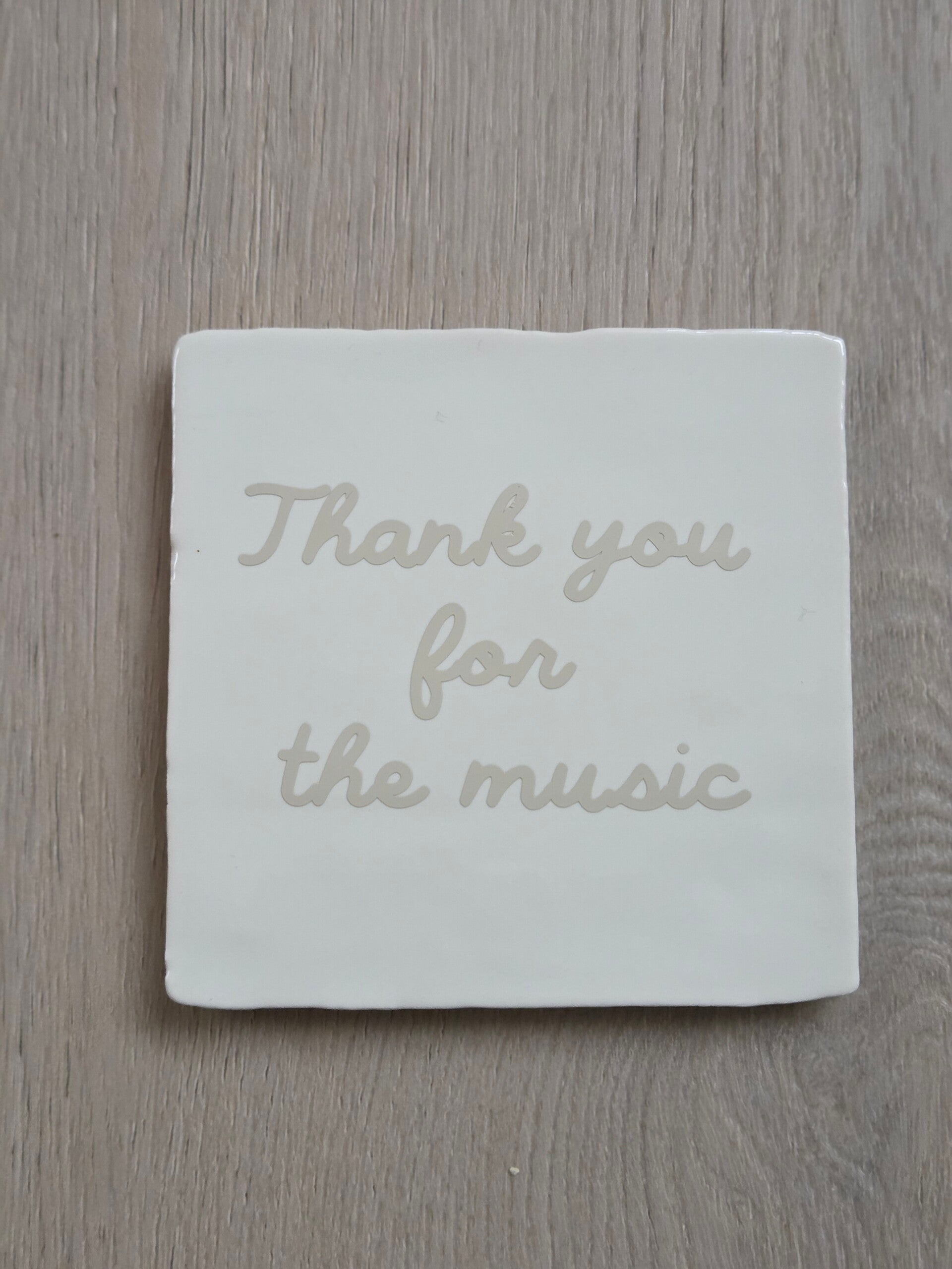 Keramiek Tegeltje Quote - "Thank you for the music" - Crème met Beige Opdruk | 10x10 cm