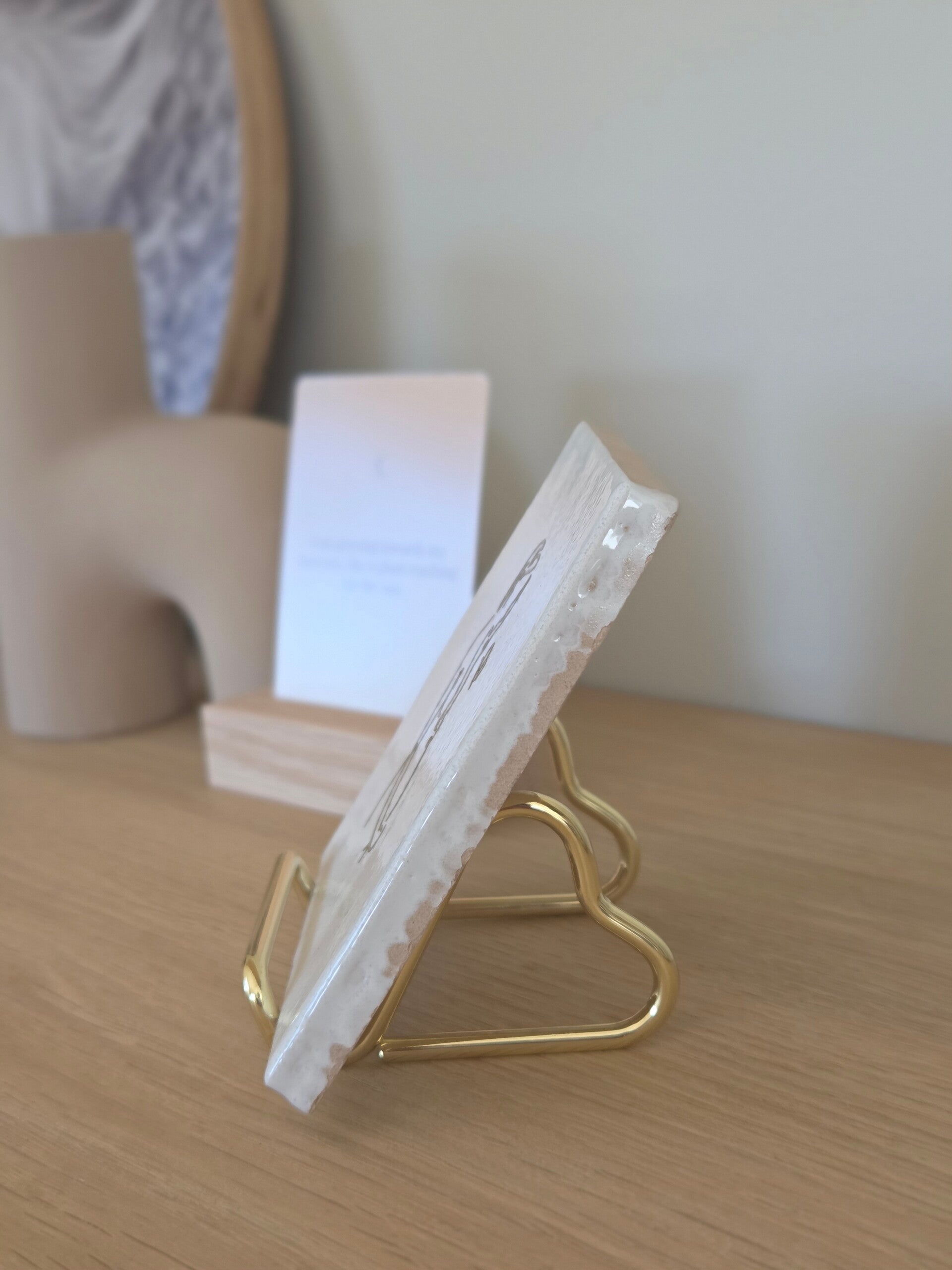 Met deze gouden tegelhouder maak je van elk tegeltje een persoonlijk en liefdevol decoratiestuk.