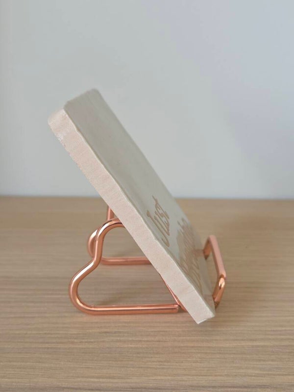 De tegelhouder hartje is perfect om een tegeltje met liefdevolle quote, tekst of illustratie neer te zetten op een plank, kast of tafel. Dankzij het elegante design voeg je direct een warme en persoonlijke sfeer toe aan elke ruimte.